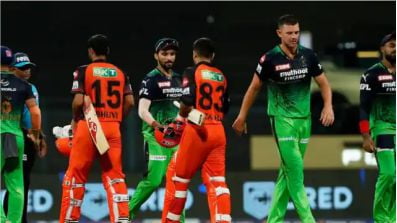 १९३ रन के लक्ष्य का पीछा करते हुए हैदराबाद की पारी १२५ के स्कोर पर ही सिमट गयी। हैदराबाद के लिए राहुल त्रिपाठी ने ३७ गेंदों पर ५८ रन बनाये जबकि बैंगलोर के लिए हसरंगा ने चार ओवर में महज़ १८ रन देकर पांच विकेट चटके। प्लेऑफ़ में पहुंचने की उम्मीदों को जि़ंदा रखने के लिए हैदराबाद को अपने बाक़ी तीनों मैच जीतने होंगे।