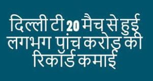 दिल्ली टी२० मैच से हुई लगभग पांच करोड़ की कमाई