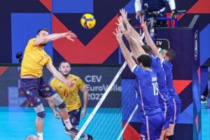 जेरूसलम, ०६ सितंबर। रोमानिया ने ओलंपिक चैंपियन फ्रांस को ३-१ से हराकर २०२३ पुरुष यूरोपीय वॉलीबॉल चैंपियनशिप (यूरोवॉली) के राउंड १६ में जगह पक्की कर ली। हालाँकि फ्रांस ने पहले ही अंतिम १६ में अपना स्थान सुरक्षित कर लिया था