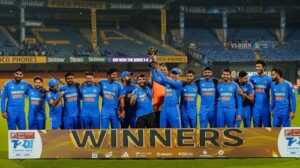 बेंगलुरु। भारत ने बुधवार को एम चिन्नास्वामी स्टेडियम में अफगानिस्तान को डबल सुपर ओवर में हराकर ५ मैचों की टी२० सीरीज ३-० से अपने नाम कर ली। अफगानिस्तान के खिलाफ इस जीत के साथ कप्तान रोहित शर्मा के पास अब