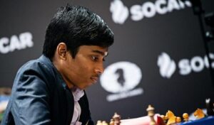 नईदिल्ली। भारत के युवा शतरंज खिलाड़ी आर प्रगनानंदा ने टाटा स्टील मास्टर्स के चौथे दौर के मुकाबले में मौजूदा विश्व चैंपियन डिंग लिरेन को हराने का कारनामा किया है। इस जीत के साथ ही वह शीर्ष रैंक वाले भारतीय ग्रैंडमास्टर