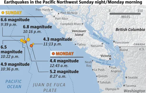 अधिक पढ़ें.. वैंकूवर आइलैंड्स के वाशिंगटन में लगे भूकंप के झटके, रिक्टर स्केल पर ४.० रही तीव्रता