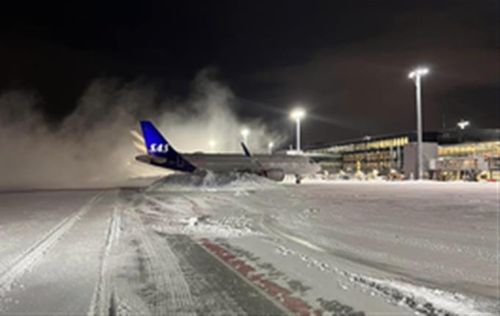 हवाईअड्डे के संचालक एविनोर के संचार प्रबंधक कैथरीन फ्रैमहोल्ट के हवाले से कहा गया है कि हवाईअड्डे के अभी बंद रहने की आशंका है, क्योंकि बर्फबारी इतनी तेज थी कि कुछ भी दिखाई नहीं दे रहा था।