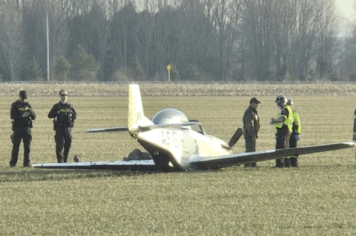 ओंटारियो प्रांतीय पुलिस (ओपीपी) ने बताया कि यह दुर्घटना स्प्रिंगवाटर टाउनशिप में हाइवे २६ और स्ट्रांगविले रोड के पास एक खेत में हुई।